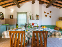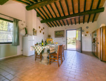 Maison à 3 apts de 2 étages, environnée par les arbres et champs. À 3.5 km du centre de Bibbona, à 9 km du centre de Cecina, situation isolée, tranquille, à 7.5 km de la mer. En commun: terrain à l'état naturel, jardin (pas clôturé). Infrastructures de la résidence: réception, restaurant. Petit-déjeuner sur demande (en sus). Accès en voiture (1.2 km chemin non goudronné). Place de parking (couvert) près de la maison. Magasin d'alimentation 3.5 km, supermarché 8 km, boulangerie 3.5 km, plage de sable "Marina di Cecina" 7.5 km, centre thermal "Calidario" 36 km. Marina 25 km. Attractions à proximité: Bolgheri 8 km, Pisa 65 km, Livorno 45 km, Firenze 120 km. Sur le terrain des animaux. Vente locale de produits de la ferme.Interior