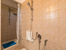 "Tramontana", apt 3 pièces 75 m2, au rez-de-chaussée. Spacieux, aménagement agréable et de bon goût: séjour/salle à manger. 2 chambres doubles. Cuisine ouverte (Poêle à gaz, 5 feux, grille-pain, bouilloire électrique, cafetière électrique) avec table pour les repas. Sortie sur le balcon. Douche/bidet/WC. Chauffage au gaz (en sus). Grande terrasse 30 m2 partiellement couverte. Meubles de terrasse, barbecue, chaises longues (2). Très belle vue panoramique sur la mer, les alentours et la localité. A disposition: lave-linge, fer à repasser, moustiquaire, chaise haute pour enfant, lit bébé jusqu'à 2 ans, sèche-cheveux. Internet (Connexion WIFI, gratuit). Veuillez noter: 2 animaux/ chiens autorisés. Entrée privée.- Installations