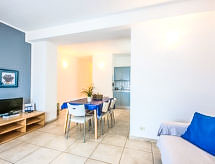 Immeuble. Au centre de San Vincenzo, excellente situation: centrale mais tranquille, à 100 m de la mer. En commun: piscine (13 x 5 m, disponibilité saisonnière: 27.Avr. - 31.Oct.). Meubles de jardin, barbecue. Infrastructures de la Maison: accès internet, Connexion WIFI, location de bicyclettes. Change de linge (suppl. en sus). Changementde linge de toilette (suppl. en sus). Nettoyage 2 fois par semaine (inclus). Service boulangerie sur demande (en sus). Place de parking (couvert, nombre de places limité, en sus). Magasin d'alimentation 250 m, supermarché 350 m, restaurant, plage de sable 100 m. Marina 10 m. Attractions à proximité: Baratti, Populonia, Bolgheri. Veuillez noter: équipement pour bébés sur demande (inclus). Une navette depuis l´aéroport peut être organisée sur demande.Interior