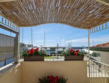 "Trilocale", apt 3 pièces 65 m2. Aménagement confortable: séjour avec 1 divan-lit double et Télévision numérique. 1 chambre double avec 1 lit double et 1 couchage. 1 petite chambre avec 2 lits. Coin cuisine (4 feux). Douche/bidet/WC. Air-conditionné. Vue sur le port. A disposition: sèche-cheveux. Internet (Connexion WIFI, gratuit). Adapté(e) aux familles. 1 animal/ chien autorisé. Cette location est un exemple de location / d'appartement. Planche (à repasser) et fer à repasser selon disponibilité (en sus). Bouilloire, coffre-fort et machine à café électrique (capsules) disponibles (capsules supplémentaires). Lit supplémentaire sur demande (20 euros / jour, paiement sur place).- Installations