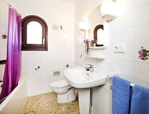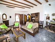 Maryvilla: Immeuble accueillant pour les enfants, accueillant, rustique "Vistamar", environné par les arbres. 2 maisons dans la résidence. 5 appartements dans la résidence. Dans la localité, à 2.5 km du centre de Calpe, dans l'arrondissement Maryvilla, situation tranquille, ensoleillée quartier résidentiel, zone avec peu de trafic, à 650 m de la mer, à 650 m de la plage, dans une impasse. En commun: terrain 1'400 m2 (clôturé), beau jardin sur plusieurs niveaux entretenu, verger, piscine rectangulaire (10 x 5 m, profondeur 150 - 200 cm, disponibilité saisonnière: 01.Jan. - 31.Dec. horaires d'ouverture de la piscine: 09:00-22:00). Douche extérieure. A usage privé: terrasse, barbecue. Infrastructures de la résidence: lave-linge (en commun), possibilité de chauffage uniquement du 01.11. au 31.03.. Place de parking (nombre de places limité) près de la maison. Magasin d'alimentation 3.1 km, supermarché 3.1 km, restaurant, bar, café 240 m, plage de sable "Playa Arenal" 3 km, plage de galets "Playa Puerto Blanco" 650 m. Port plaisance 5.3 km, marina 5.3 km, terrain de golf 14.8 km, ecole de surf 5.3 km, ecole de voile 5.3 km, tennis 3.2 km. Attractions à proximité: Aqualandia, Mundomar, Terra Mítica, Terra Natura, Benidorm Palace (Benidorm). Veuillez noter: adapté(e) aux familles, indiqué pour séniors. Groupes de jeunes sur demande seulement. D’autres appartements sont également proposés à la location dans cette maison de vacances. Toutes les maisons/appartements sont aménagés individuellement. Environnement très sensible au bruit. Silence et bonne tenue exigés.Interior