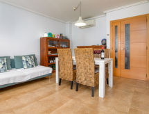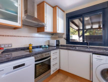 Belle, grande maison mitoyenne confortable "Turquesa", de 2 étages. Dans la localité El Vergel, en bordure de la localité, à 10 km du centre de Dénia, situation tranquille, à 1 km de la mer, à 1 km de la plage. En commun: plantes et arbres, jardin naturel, jardin propice à la détente, piscine cloturée (13 x 10 m, profondeur 110 - 180 cm, disponibilité saisonnière: 01.Jan. - 31.Dec.) avec marches intérieures. Piscine de forme irrégulière. Bassin pour les enfants, douche extérieure, espace de jeux pour les enfants (toboggan). A usage privé: terrasse. Infrastructures de la Maison: terrasse ensoleillée. Place de parking près de la maison. Supermarché 20 m, restaurant 150 m, café 240 m, plage de sable "El Vergel" 1 km. Ecole de surf 1 km, ecole de voile 1 km. Groupes de jeunes sur demande seulement.Interior