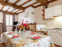 Maison jumelée accueillante, rustique "Tytisa". À 700 m du centre de Barneville Carteret, à 10 km du centre de Portbail, à 35 km du centre de Cherbourg, à 1 km de la mer, à 1 km de la plage. En commun: jardin 800 m2 avec plantes, champ, verger. Accès en voiture par un chemin de 50 m de long (chemin non goudronné). Place de parking près de la maison à 30 m. Supermarché 200 m, plage de sable 1 km. Terrain de golf (18 trous) 1 km. Veuillez noter: le propriétaire habite sur le même terrain.Interior