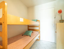 Studio 32 m2 au 2ème étage. Séjour/salle à manger avec 1 divan-lit double (130 cm, longueur 190 cm), TV (écran plat). Entrée avec 1 lit (90 cm, longueur 190 cm). Cabine avec 1 x 2 lits superposés (90 cm, longueur 190 cm). Coin cuisine (4 plaques de cuisson, four, grille-pain, bouilloire électrique, four micro-ondes, cafetière électrique). Salle de bains, WC séparé. Terrasse 8 m2, situation sud. Meubles de terrasse. Vue sur le jardin. A disposition: Internet (Connexion WIFI, en sus). Place de parking. Veuillez noter: détecteur de fumée.- Caractéristiques de l'hébergement