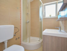 Tribunj à 3 km de Vodice: Maison jumelée "Valdor", de 2 étages. Dans le hameau de Sovlje, à 1.5 km du centre de Tribunj, situation tranquille, ensoleillée, à 500 m de la mer, à 500 m de la plage, dans une impasse. A usage privé: terrain (clôturé) avec pelouse, piscine ronde (5 m diamètre, profondeur 110 cm, disponibilité saisonnière: 01.Mai. - 15.Oct.). Douche extérieure, terrasse (12 m2), meubles de jardin, barbecue. Infrastructures de la Maison: accès internet, lave-linge. Place de parking près de la maison sur le terrain. Magasins 1.5 km, restaurant 150 m, plage de graviers, plage de rochers, plage bétonnée 500 m. Plage de béton avec douches dans la baie de Sovlje à 500m de la maison.Interior