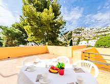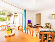 Apt 4 pièces 83 m2. Clair, aménagement fonctionnel et confortable: séjour/salle à manger avec TV (satellite) et Télévision numérique (écran plat). Sortie sur la terrasse. 2 chambres, chaque chambre avec: 2 lits (90 cm). 1 chambre avec 1 grand-lit (150 cm). Cuisine (4 plaques vitrocéramiques, grille-pain, four micro-ondes, congélateur, cafetière électrique). Douche/WC. Pas de chauffage. A disposition: lave-linge. Internet (Connexion WIFI, gratuit). Garage No 5. Veuillez noter: parking pour 1 petite voiture. TV seulement ES, DE. Mesures du garage de mur à mur : longueur 4,80 x largeur 2,40. HUTG007516- Installations