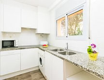 Canyelles Petites: Complexe de vacances accueillant, simple "Velazquez". Canyelles Petites, dans la localité, à 4 km du centre de Roses, situation tranquille, ensoleillée sur un versant, à 60 m de la mer, à 60 m de la plage, route à traverser. En commun: piscine rectangulaire (10 x 4 m, profondeur 80 - 180 cm, disponibilité saisonnière: 12.Mai. - 30.Sep.) avec marches intérieures. Infrastructures de la Maison: Connexion WIFI. Magasins, magasin d'alimentation, supermarché 150 m, restaurant 100 m, bar, café 20 m, zone piétonne 30 m, arrêt du bus 100 m, plage de sable "Canyelles Petites", crique pour baignade 60 m. Port plaisance 3 km, terrain de golf 20 km, tennis 5 km, centre équestre 10 km. Attractions à proximité: Parque Acuático Aquabrava Roses 6 km, Skydive y túnel del viento Empuriabrava 11 km, Cadaqués 18 km, Castillo y casino de Perelada 25 km, Monasterio de Sant Pere de Rodes 24 km, Museo Dalí Figueres 24 km. Veuillez noter: D’autres appartements sont également proposés à la location dans cette maison de vacances. L'immeuble est construit en terrasses, à flanc de colline. Les terrasses des appartements sont communicantes. Accès aux appartements et à la piscine par escaliers. Les appartements sont situés à 200m de la plage de Canyelles Petites, l'une des plus belles plages de Roses. A noter : la résidence est principalement occupée par des familles. Le réglement intérieur de la résidence exige le silence à partir de 23h. Tous les apartement on de garage privee moins la ref es9410.383.3 Veuillez note : appartements sans chauffage.Interior