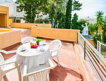 Canyelles Petites: Complexe de vacances accueillant, simple "Velazquez". Canyelles Petites, dans la localité, à 4 km du centre de Roses, situation tranquille, ensoleillée sur un versant, à 60 m de la mer, à 60 m de la plage, route à traverser. En commun: piscine rectangulaire (10 x 4 m, profondeur 80 - 180 cm, disponibilité saisonnière: 12.Mai. - 30.Sep.) avec marches intérieures. Infrastructures de la Maison: Connexion WIFI. Magasins, magasin d'alimentation, supermarché 150 m, restaurant 100 m, bar, café 20 m, zone piétonne 30 m, arrêt du bus 100 m, plage de sable "Canyelles Petites", crique pour baignade 60 m. Port plaisance 3 km, terrain de golf 20 km, tennis 5 km, centre équestre 10 km. Attractions à proximité: Parque Acuático Aquabrava Roses 6 km, Skydive y túnel del viento Empuriabrava 11 km, Cadaqués 18 km, Castillo y casino de Perelada 25 km, Monasterio de Sant Pere de Rodes 24 km, Museo Dalí Figueres 24 km. Veuillez noter: D’autres appartements sont également proposés à la location dans cette maison de vacances. L'immeuble est construit en terrasses, à flanc de colline. Les terrasses des appartements sont communicantes. Accès aux appartements et à la piscine par escaliers. Les appartements sont situés à 200m de la plage de Canyelles Petites, l'une des plus belles plages de Roses. A noter : la résidence est principalement occupée par des familles. Le réglement intérieur de la résidence exige le silence à partir de 23h. Tous les apartement on de garage privee moins la ref es9410.383.3 Veuillez note : appartements sans chauffage.Interior