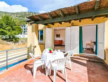 Apt 3 pièces 60 m2. Aménagement fonctionnel: séjour/salle à manger avec 1 divan-lit double et TV (satellite) (écran plat). 1 chambre avec 1 grand-lit. Sortie sur la terrasse. 1 chambre avec 2 lits. Cuisine (4 plaques vitrocéramiques, four micro-ondes, congélateur, cafetière électrique). Douche/WC. Pas de chauffage. Terrasse. Meubles de terrasse. A disposition: lave-linge. Internet (Connexion WIFI, gratuit). Garage No 7 (4,90x2,90). Veuillez noter: parking pour 1 petite voiture. TV seulement ES, DE. Veuillez note : appartements sans chauffage. HUTG007509- Installations
