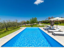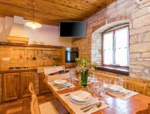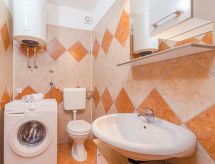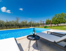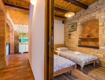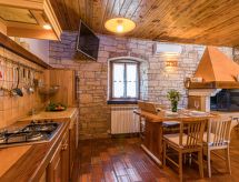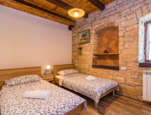 Maison individuelle "Vera (KST418)", de 2 étages. Dans le hameau de Sveti Ivan, à 15 km du centre de Kaštelir, à 6 km du centre de Višnjan, à 17 km du centre de Poreč, à 17 km de la mer. A usage privé: terrain 2'000 m2 (clôturé) avec pelouse et arbres, piscine rectangulaire (10 x 4 m, profondeur 150 cm, disponibilité saisonnière: 27.Mar. - 05.Nov.) avec marches intérieures. Douche extérieure, terrasse (24 m2), meubles de jardin (balançoire). Infrastructures de la Maison: accès internet, lave-linge. Place de parking (pour 3 voitures) près de la maison sur le terrain. Magasins 2.5 km, supermarché 6 km, plage de graviers 17 km. Le propriétaire n'accepte pas les groupes de jeunes. Veuillez noter: 1 er étage est fermé et inoccupé.Interior