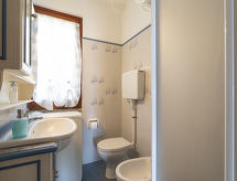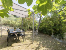 "Verde Adagio", apt 2 pièces 60 m2 au 1er étage. Aménagement fonctionnel et rustique: séjour/salle à manger avec 1 divan-lit double (140 cm, longueur 200 cm), TV. Sortie sur la terrasse. 1 chambre double. Coin cuisine (4 feux, grille-pain, four micro-ondes). Douche/bidet/WC. Chauffage électrique. Possibilité de chauffage uniquement du 15.10. au 30.04. Balcon 6 m2, jardin 200 m2. Mobilier de balcon, barbecue, place pour s'asseoir. Vue éloignée sur la mer et les alentours. A disposition: lave-linge. Internet (Connexion WIFI, gratuit). 1 animal/ chien autorisé. CITRA:008025-LT-0029- Installations
