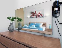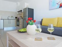 Apt 2 pièces pour 2 personnes, 50 m2, moderne aménagement. Séjour/salle à manger avec TV régional et DVD. Non permis de fumer. Internet (Connexion WIFI). 1 divan-lit. Chambre à coucher avec 1 lit double. Cuisine avec four à 4 plaques, four micro-ondes, four, table pour les repas, lave-vaisselle, réfrigérateur et congélateur. Douche/WC. Balcon, meubles de terrasse. Autres fournitures: coffre-fort, sèche-cheveux, fer à repasser, lave-linge.- Caractéristiques de l'hébergement