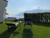 "Lakeview-Appartment", apt 4 pièces 160 m2, situation sud-ouest. Spacieux et clair, aménagement confortable et plaisant: grand séjour/salle à manger ouvert avec baie vitrée avec TV (câblée) et chaînes de TV internationales (écran plat). Sortie sur la terrasse. 1 chambre avec 1 lit (90 cm, longueur 200 cm), TV (câblée) (écran plat). 1 chambre double avec 1 lit double (160 cm, longueur 200 cm). 1 chambre double avec 1 lit double (2 x 80 cm, longueur 200 cm), douche/bidet/WC et bain à remous . Cuisine (four, lave-vaisselle, 4 plaques vitrocéramiques, grille-pain, bouilloire électrique, four micro-ondes, cafetière électrique, Capsules pour machine à café (Nespresso) (NON INCLUSES), appareil à raclette, service à fondue (fondue chinoise, fondue au fromage)). Sortie sur la terrasse. Bain/WC, WC séparé. Chauffage électrique. Grande terrasse partiellement couverte, jardinet. Meubles de terrasse, chaises longues (5). Superbe vue panoramique sur le lac, les montagnes et les alentours. A disposition: lave-linge, sèche-linge, fer à repasser, chaise haute pour enfant, lit bébé jusqu'à 2 ans (en sus), sèche-cheveux. Internet (Connexion WIFI, gratuit). Place de parking No 1 (couvert). Veuillez noter: logement non-fumeur.- Caractéristiques de l'hébergement