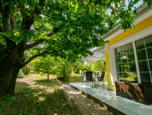 Maison 4 pièces 110 m2. Spacieux, partiellement rénovée en 2020, aménagement de bon goût: séjour avec TV (satellite) et air-conditionné. Sortie sur la terrasse. 1 chambre avec 2 lits. Cuisine ouverte (4 plaques de cuisson, four, lave-vaisselle, four micro-ondes, congélateur). Douche/WC. À l'étage supérieur: galerie. 2 chambres, chaque chambre avec: 1 grand-lit (160 cm, longueur 200 cm), air-conditionné. Bain/WC. Grande terrasse 30 m2. Chaises longues (6). A disposition: lave-linge. Place de parking (cloturée, 2 Voitures). 2 animaux/ chiens autorisés. EG19018256- Caractéristiques de l'hébergement