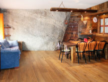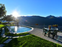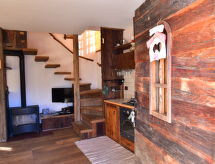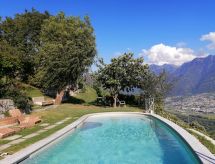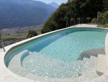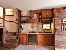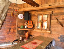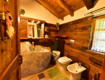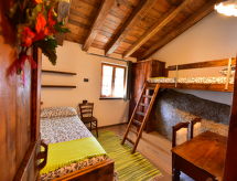 Civo à 5 km de Morbegno: Beau cottage rustique "Rustico Vigna", 475 m au dessus du niveau de la mer, environné par les prés et vignobles. Dans le quartier de Santa Croce, à 1 km du centre de Civo, en bordure de la localité, à 5.5 km du centre de Morbegno, à 31 km du centre de Sondrio, sur un versant, à 21 km du lac, dans la verdure, orientée sud. A usage privé: terrain, jardin sur plusieurs niveaux (pas clôturé) avec pelouse et plantes, champ, verger, piscine en forme d’haricot, chauffée (10 x 4 m, profondeur 135 cm, disponibilité saisonnière: 15.Avr. - 15.Oct.) avec marches intérieures. Douche extérieure, tonnelle, meubles de jardin, barbecue, espace barbecue. 150 m sentier jusqu'à la maison. Place de parking sur le terrain. Magasins 2.6 km, supermarché 4.5 km, restaurant 2 km, gare ferroviaire "Morbegno (Milano-Sondrio)" 5 km, plage de sable "Sorico 'La Punta': Lago di Como" 21 km, plage de gazon "Colico: Lago di Como" 23 km, piscine couverte 5.5 km, centre thermal "Bagni di Masino" 21 km. Terrain de golf (9 trous) 25 km, chemins de randonnées pédestres depuis la maison 100 m. Attractions à proximité: Castello di Domofole 6 km, Bosco Magico di Dazio 4.7 km. Les lacs connus sont facilement accessibles: Lago di Como 21 km. Région de randonnées: Civo: Fraz.Poira-Monte Spluga (2845 m) 7 km, Val Masino: San Martino 20 km, Val Gerola (del Bitto): Pedesina 16 km.Interior