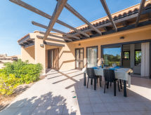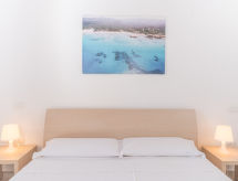 Maison 4 pièces 105 m2. Clair, aménagement simple et moderne: séjour/chambre à coucher avec 1 divan-lit double, table pour les repas et TV. Sortie sur la terrasse. 1 chambre avec 1 lit double et douche/WC. Sortie sur la terrasse. 1 chambre avec 1 lit double. 1 chambre avec 1 lit gigogne (2 pers.). Cuisine ouverte (lave-vaisselle, 4 feux, grille-pain, bouilloire électrique, four micro-ondes). Sortie sur la terrasse. Douche/WC. Chauffage, air-conditionné. Grande terrasse partiellement couverte. Meubles de terrasse, barbecue. Vue sur la mer. A disposition: lave-linge, lit bébé. Internet (Connexion WIFI, gratuit). 1 animal/ chien autorisé.- Installations