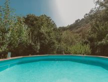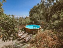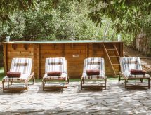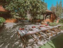 Maison individuelle, 8 pièces pour 10 personnes, 340 m2 sur 2 niveaux, confortable et rustique aménagement. Séjour avec TV (satellite) et cheminée. Non permis de fumer. Internet (Connexion WIFI). Chambre à coucher avec 1 lit double. Chambre à coucher avec 2 lits normaux. Chambre à coucher avec 1 lit gigogne et 1 lit superposé. Chambre à coucher avec 1 lit double. Cuisine/séjour avec four à 4 plaques, four micro-ondes, four, table pour les repas, lave-vaisselle, réfrigérateur et congélateur. Bain/WC et bain/douche/WC. Terrasse, jardinet, meubles de terrasse. Autres fournitures: coffre-fort, chaise haute pour enfant, sèche-cheveux, fer à repasser, lave-linge, sèche-linge. Wi-Fi (en sus: 6 euros / jour) à payer sur place. 2015/1904- Caractéristiques de l'hébergement