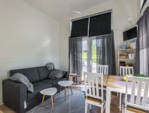 Maximum 1 animal/ chien autorisé. 85 km au sud-ouest de Turku, archipel à 100 m, embarcadère. La plage est partagée entre les villas du village de vacances. Pas de canot à rames, mais il peut être loué à l'hôtel voisin. Villa de vacances neuve de 30 m², construite en 2020. Séjour / cuisine bien équipé, lit double dans la chambre, canapé-lit 2 personnes dans le séjour, pompe à chaleur air, deux matelas 20 cm dans le grenier. Escalier raide transférable menant au grenier (la hauteur de la pièce dans le grenier est faible). Terrasse avec meubles, chaises longues et barbecue à gaz devant la cabine. Il y a un hôtel situé dans le même quartier, par exemple, le déjeuner est servi régulièrement. Il existe également des services de programme offerts par l'hôtel. Remarquez! Le prix de location comprend quatre draps (pour les lits au rez-de-chaussée) et des serviettes. Si vous souhaitez disposer de linge de lit pour les lits à l'étage, veuillez les réserver séparément (moyennant des frais supplémentaires) ou les apporter vous-même. Villa moderne et petite, qui offre beaucoup plus d'espace que l'on peut attendre en regardant simplement la superficie totale du bâtiment. Cette villa de vacances très équipée, lumineuse et spacieuse vous offre une atmosphère moderne de type archipel. Il y a actuellement six villas de vacances dans le village de vacances de Merikruunu. La zone est encore en construction et elle sera achevée à l'automne 2020. La villa Merikruunu bénéficie d'un excellent emplacement le long de la route et du passage du bateau, l'arrêt de bus est en bordure de la parcelle. À proximité du trou de Gullkrona et de nombreuses autres destinations de visite sur la mer de l'archipel. Par exemple, des liaisons par ferry vers les îles Örö, Hiittisi, Bengtskär et Högsåra. Kasnäs Spa avec piscines extérieures, centre Viking, deux terrains de golf, Söderlångvik, Sagalund et le parc national de Teijo. Merikruunu est un chef-d'œuvre créé par les architectes Lukas Senkus et Peik Cygnel. Ici, vous pouvez sentir l'atmosphère scandinave et l'intimité honorant la précieuse histoire de la région.- Installations