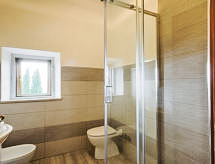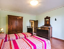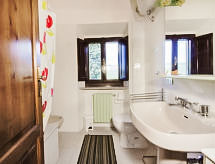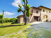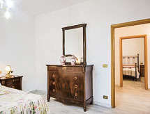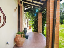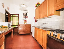 Maison 10 pièces 300 m2 sur 2 niveaux. Aménagement à l'ancienne et de bon goût: séjour avec TV (satellite) et DVD. Sortie sur la loggia. Salle à manger avec cheminée et table pour les repas. 1 chambre double avec douche/WC. 1 chambre double. Cuisine (4 plaques de cuisson, four, lave-vaisselle, four micro-ondes). Douche/bidet/WC. À l'étage supérieur: 5 chambres doubles. 1 chambre avec 2 lits. 2 bains/bidet/WC, douche/bidet/WC. Jardinet couvert, jardin, tonnelle 50 m2. Place pour s'asseoir. A disposition: lave-linge, chaise haute pour enfant, lit bébé jusqu'à 3 ans. Internet (Connexion WIFI, gratuit). Place de parking près de la maison. Adapté(e) aux familles. Maison privée avec un décor élégant et un mobilier restauré dans le style Liberty. Ceci donne une ambiance relaxante et sophistiquée. Veuillez noter qu'une partie de la maison (constituée de 3 chambres et de 2 douches/WC) n'est accessible que depuis l'extérieur et n'est pas connectée par l'intérieur à la maison principale.- Activités à proximité