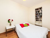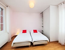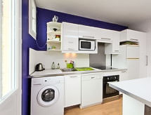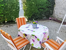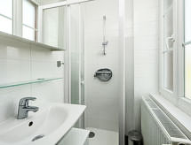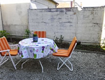 Villa 4 pièces 110 m2 sur 3 niveaux. Séjour/salle à manger avec TV (écran plat). Sortie sur le jardin. 1 chambre avec 1 divan-lit double (160 cm, longueur 200 cm). Cuisine ouverte (four, lave-vaisselle, 3 plaques vitrocéramiques, grille-pain, bouilloire électrique, four micro-ondes, congélateur, cafetière électrique) avec passe-plat. Douche, WC séparé. À l'étage supérieur: 1 chambre avec 2 lits (90 cm, longueur 190 cm), lavabo et douche. Sortie sur la terrasse. 2ème étage: 1 chambre avec 1 grand-lit (2 x 80 cm, longueur 190 cm), lavabo et WC séparés. Terrasse 30 m2, jardin 200 m2. Meubles de terrasse. A disposition: lave-linge, fer à repasser. Internet (Connexion WIFI, en sus). Place de parking (cloturée). Veuillez noter: maison non-fumeur. Détecteur de fumée. Animaux domestiques non tolérés.- Installations