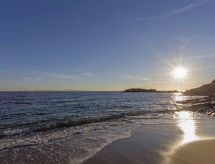 Apt 3 pièces 45 m2 au 1er étage, situation sud. Aménagement fonctionnel et confortable: séjour/salle à manger avec cheminée et TV (satellite) (écran plat). Sortie sur la terrasse. 1 chambre avec 1 lit (150 cm). 1 chambre avec 1 x 2 lits superposés. Cuisine (4 plaques de cuisson, four, four micro-ondes). Douche/WC. Terrasse 15 m2 partiellement couverte. Meubles de terrasse. Superbe vue panoramique sur la mer, les montagnes et les alentours. A disposition: lave-linge. Place de parking près de la maison. Maximum 1 animal/ chien autorisé. HUTG010222- Installations