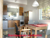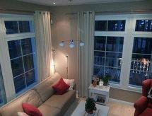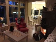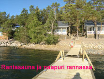 40 km au sud de Turku, Archipel Mer / Zone Airisto 150 m, rivage peu profond et profond, fond de moraine dure, propre rivage, jetée partagée avec le chalet voisin, bateau. Chalet en bois avec 2 étages - 2005, cuisine du bas, salon, salle à manger (table pour 10) chambre avec lit double, dressing, salle d'eau avec 2 douches, sauna (cuisinière élec.), sauna infra-rouge, toilette, hall et deux grandes porches ouverts. A l'étage 2 chambres avec lit double dans chacune, séjour canapé convertible 2 personnes, wc et balcon. Dites-nous à l'avance si vous souhaitez des lits jumeaux au lieu de lits doubles. Sauna séparé au bord du lac (25 m², utilisation toute l'année), rivage 10 m. Le sauna au bord du lac dispose d'une lumière électrique, d'un chauffage au sol, d'une cuisinière électrique et d'un réfrigérateur, d'un micro-ondes, d'une douche dans le sauna, de toilettes, d'un poêle à bois, d'une télévision et d'une radio. Chambre avec cheminée, deux canapés/lit convertible et grenier (vers laquelle marches). Sauna à fumée en supplément, 150 euros/heure. 2 x lit de voyage et une chaise haute pour un bébé. Beau chalet avec sauna en bord de mer dans la zone d'exposition des maisons de vacances de Stormälo (Parainen). Distance au rivage 150 m, pente raide au rivage. Les saunas au bord du lac sont alignés le long du rivage, le voisin est à 10 m, des vues splendides sur la mer. Belle maison de vacances juste à côté des meilleures eaux de pêche de la zone maritime d'Airisto ! Les bateaux de toutes tailles peuvent atteindre le rivage du sauna, il y a aussi un autre quai plus abrité à 300 m de distance. Il y a le wifi et la ventilation mécanique. Court de tennis à 100 m, terrain de golf à 12 km, Airiston Strand hotelli à 300 m, Parainen à 15 km, Turku à 40 km, Naantali à 57 km. VEUILLEZ NOTER : Le temps minimum de réservation est de 7 nuits.- Installations