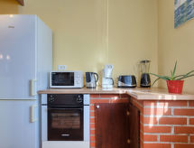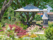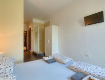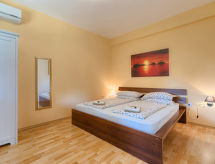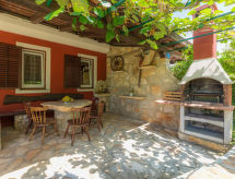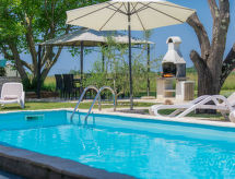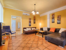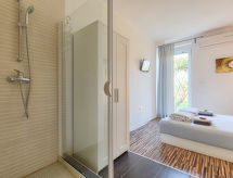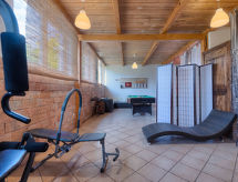 Maison 7 pièces 300 m2. Séjour/salle à manger avec 1 divan-lit double, TV (satellite), DVD et air-conditionné. Sortie sur la terrasse. Séjour avec TV (satellite). Sortie sur la terrasse, sur la piscine. 1 chambre avec 1 lit double (2 x 80 cm, longueur 200 cm), air-conditionné. 3 chambres, chaque chambre avec: 1 grand-lit (160 cm, longueur 200 cm), douche/WC, TV (satellite) et air-conditionné. 1 chambre avec 1 grand-lit (160 cm, longueur 200 cm). Cuisine ouverte (4 plaques de cuisson, four, lave-vaisselle, four micro-ondes, congélateur). Bain/WC, 2 WC séparés. Terrasse 15 m2, couverte, terrasse 20 m2, couverte. Meubles de terrasse, barbecue. Vue sur le jardin. A disposition: lit bébé. Internet (Connexion WIFI, gratuit). 2 animaux/ chiens autorisés.- Caractéristiques de l'hébergement