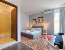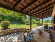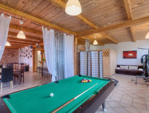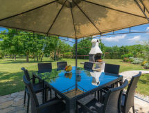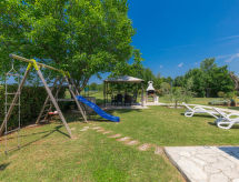 Plovanija à 4 km de Buje: Maison individuelle "Villa Renzo". Dans le hameau de Simonetija, à 1 km du centre de Plovanija, à 10 km du centre d'Umag, situation tranquille, à 5 km de la mer, dans la verdure. A usage privé: terrain 3'000 m2 (clôturé), jardin avec pelouse 1'000 m2 arbres, piscine rectangulaire (3 x 8 m, profondeur 140 cm, disponibilité saisonnière: 11.Mai. - 21.Sep.). Douche extérieure, bain à remous , barbecue, espace de jeux pour les enfants (balançoire). Infrastructures de la Maison: accès internet, sauna, billard, lave-linge. Place de parking (couvert) près de la maison sur le terrain. Magasins, restaurant 500 m, plage de graviers 5 km. Terrain de golf 10 km, tennis 7 km, chemins de randonnées pédestres depuis la maison, piste cyclable 10 m. Le propriétaire n'accepte pas les groupes de jeunes.Interior