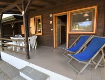 "Bungalow Upolu", bungalow 3 pièces 35 m2. Aménagement fonctionnel: séjour/chambre à coucher avec 1 divan-lit, table pour les repas, TV (satellite) et air-conditionné. 2 chambres, chaque chambre avec: 2 lits. Coin cuisine (4 feux, congélateur). Douche/WC. Pas de chauffage. Terrasse 10 m2, couverte. Meubles de terrasse. A disposition: lit bébé. Internet (Connexion WIFI, en sus). Place de parking (couvert, 1 Voiture). Veuillez noter: maximum 1 animal/ chien autorisé. Entrée privée.- Installations