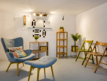 Maison jumelée accueillante, confortable "Vinya Llarga", de 2 étages, rénovée en 2021. Dans la localité, à 4 km du centre de Dénia, situation tranquille, ensoleillée, à 2 km de la mer, à 2 km de la plage. En commun: terrain (clôturé) avec pelouse et arbres, jardin propice à la détente, piscine en forme d’haricot (12 x 7 m, profondeur 110 - 180 cm, disponibilité saisonnière: 01.Jan. - 31.Dec.). Douche extérieure. A usage privé: terrain (clôturé), plantes et arbres. Terrasse, meubles de jardin, parking public possible dans la rue. Magasins 2 km, supermarché 3 km, bar 1 km, plage de sable "La Marineta" 1.5 km. Port plaisance 2.5 km, terrain de golf 7 km, ecole de surf 2.5 km, ecole de voile 2.5 km, tennis 5 km. Le propriétaire n'accepte pas les groupes de jeunes.Interior