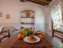 Domaine agricole. 8 appartements dans la même entité. Location composée d'un bâtiment principal et d'une annexe, à 9.8 km du centre de Peccioli, à 24 km du centre de Volterra, à 35 km du centre de San Gimignano, situation ensoleillée sur une colline, à 45 km de la mer. En commun: jardin (clôturé), piscine (20 x 8 m, profondeur 140 - 300 cm, disponibilité saisonnière: 01.Mai. - 30.Oct.). Douche extérieure, ping-pong, terrain de pétanque, meubles de jardin, barbecue, espace de jeux pour les enfants, entretien de la piscine par le propriétaire/jardinier. Infrastructures de la Maison: salon avec TV, Connexion WIFI, possibilité de chauffage uniquement du 15.04. au 01.11.. Petit-déjeuner possible (en sus). Accès en voiture jusqu'à la maison (800 m chemin non goudronné). Place de parking sur le terrain. Magasin d'alimentation 3.8 km, supermarché 3.8 km, restaurant 500 m, bar 1 km, plage de sable "Marina di Cecina, Vada, Tirrenia" 45 km, plage de galets "Castiglioncello" 60 km, centre thermal "Casciana Terme" 29 km. Terrain de golf (18 trous) 13 km. Attractions à proximité: Lajatico 21 km, Chianni 25 km, San Miniato 45 km, Pisa 55 km, Lucca 57 km, Bolgheri 62 km. Adapté à l'organisation d'évènements.Interior