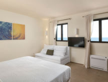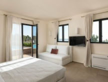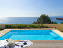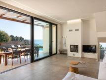 "Vista Mare", villa 4 pièces 150 m2. Spacieux et clair, aménagement confortable et agréable: séjour ouvert avec cheminée et TV (satellite) (écran plat). Sortie sur le jardin, sur la piscine. 1 chambre double avec 1 divan-lit, 1 lit double, douche/WC et TV (satellite) (écran plat). Sortie sur la terrasse. 1 chambre double avec 1 lit double et TV (satellite) (écran plat). 1 chambre double avec 2 lits, douche/WC et TV (satellite) (écran plat). Cuisine ouverte (four, lave-vaisselle, 4 plaques vitrocéramiques, grille-pain, bouilloire électrique, four micro-ondes, cafetière électrique). Douche/WC. Air-conditionné. Terrasse partiellement couverte. Barbecue. Belle vue sur la mer et les alentours. A disposition: lave-linge, coffre-fort, fer à repasser, sèche-cheveux. Internet (Connexion WIFI, gratuit). 00001201490- Installations