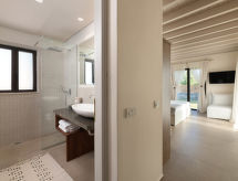 Belle villa moderne, individuelle "Vista Mare". Dans le quartier de Pefkoi, à 6 km du centre de Lindos, situation ensoleillée, à 40 m de la mer, à 750 m de la plage. A usage privé: beau jardin entretenu avec fleurs et arbres, pré, piscine rectangulaire (15 m2, profondeur 120 cm, disponibilité saisonnière: 01.Avr. - 30.Nov.). Place de parking près de la maison. Magasin d'alimentation 2 km, supermarché 2 km, restaurant 2 km, bar 2 km, boulangerie 2 km, café 2 km, plage de sable "Kavos" 750 m. Terrain de golf (18 trous) 63.9 km, centre équestre 42.4 km. Attractions à proximité: Valley of the Butterflies 49.8 km, Lindos Acropolis 6.3 km, Asklipio Castle 18.4 km, Palace of the Grand Master of Knights 55.4 km, Medieval City of Rhodes 54.4 km, Waterpark Rhodes 44.8 km. Veuillez noter: voiture recommandée. Adapté(e) aux familles, équipement pour bébés sur demande (inclus). Groupes de jeunes sur demande seulement.Interior