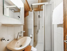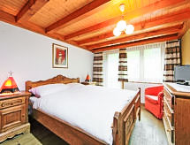 Apt 3 pièces 80 m2 sur 2 niveaux, sous le toit. Aménagement plaisant: séjour/salle à manger avec cheminée, table pour les repas, TV et DVD. Sortie sur le balcon. 1 chambre avec 1 lit double (1 x 160 cm, longueur 200 cm), TV. Cuisine ouverte (four, lave-vaisselle, 4 plaques vitrocéramiques, grille-pain, bouilloire électrique, four micro-ondes, congélateur, cafetière électrique, appareil à raclette, service à fondue (fondue chinoise, fondue au fromage)). Bain/WC, douche/WC. À l'étage supérieur: 1 chambre avec 2 lits (90 cm, longueur 200 cm). Balcon, situation sud et situation est. Mobilier de balcon. Vue sur les montagnes. A disposition: sèche-cheveux. Internet (Connexion WIFI, gratuit). Veuillez noter: logement non-fumeur.- Caractéristiques de l'hébergement
