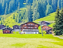 Apt 4 pièces 90 m2. Spacieux, aménagement plaisant: entrée. 1 chambre avec 1 lit et 1 lit double. 2 chambres doubles. Grand séjour/chambre à coucher avec 2 lits gigognes et TV (câblée). Grande cuisine ouverte (4 plaques de cuisson, four, lave-vaisselle, four micro-ondes) avec 1 divan-lit et coin repas. Sortie sur la terrasse. 2 douches/WC. Grande terrasse. Superbe vue. A disposition: Internet (Connexion WIFI, gratuit). Veuillez noter: logement non-fumeur. Détecteur de fumée.- Installations