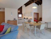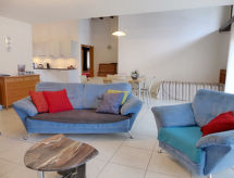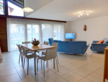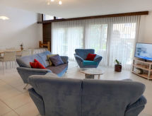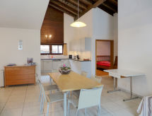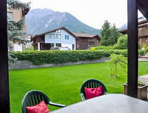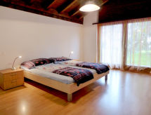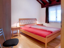 Apt 3 pièces 80 m2, au rez-de-chaussée, situation sud. Spacieux et clair, aménagement confortable et moderne: grand séjour/salle à manger 40 m2, ouvert avec table pour les repas et TV (câblée) (écran plat), radio, lecteur CD et volet roulant électrique. Sortie sur le jardinet. 1 grande chambre double 20 m2 avec 1 lit double (2 x 90 cm, longueur 200 cm), bain/douche/WC. Sortie sur le jardinet. 1 chambre double 11 m2 avec 1 grand-lit (1 x 160 cm, longueur 200 cm). Grande cuisine ouverte (four, lave-vaisselle, 4 plaques vitrocéramiques, grille-pain, bouilloire électrique, four micro-ondes, cafetière électrique, appareil à raclette, service à fondue (fondue au fromage)). WC séparé. Chauffage par le sol. Grande terrasse, situation sud, jardin, pelouse 40 m2. Meubles de terrasse, barbecue (portable). Belle vue sur les montagnes et la localité. A disposition: fer à repasser, chaise haute pour enfant, lit bébé jusqu'à 2 ans (en sus), sèche-cheveux. Internet (Connexion WIFI, gratuit). Veuillez noter: adapté(e) aux familles. Logement non-fumeur.- Caractéristiques de l'hébergement