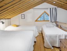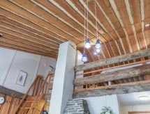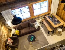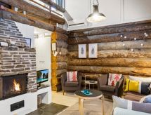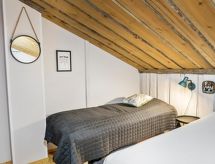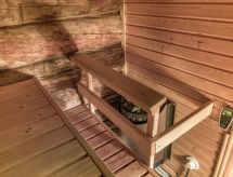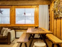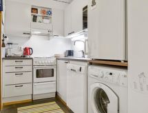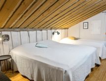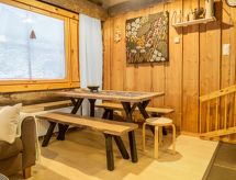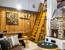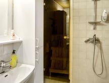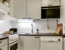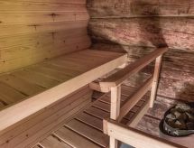 Cet appartement mitoyen situé dans le centre de ski de Vuokatti a été achevé en 1989. Surface au sol 54 m², grenier inclus. Salon/cuisine combiné, cheminée. Grenier ouvert avec lit double et lits séparés pour trois. Sauna (chauffage électrique), salle d'eau et toilettes. Climatisation. Les escaliers menant au grenier sont raides. Pour un bébé: lit de voyage (sur grenier) et chaise haute (en rangement). Kajaani 33 km, Sotkamo 7 km, piste de ski Vuokatti 100 m, piste de fond 100 m. Plage 1,5 km. Nettoyage final inclus. Linge réservé à l'avance à un prix supplémentaire. Les animaux de compagnie sont admis moyennant des frais supplémentaires. Équipement supplémentaire: fer à repasser. Arrivée à 16h00 le jour d'arrivée et départ à 12h00 le jour du départ, également en cas de séjour le week-end.- Installations