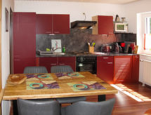 "Wanderfreund", apt 2 pièces 68 m2 au 2ème étage. Partiellement mansardé, aménagement plaisant: séjour/chambre à coucher avec 1 divan-lit double, table pour les repas, TV (satellite), chaîne stéréo et DVD. Sortie sur le balcon. 1 chambre double. Sortie sur le balcon. Cuisine ouverte (4 plaques de cuisson, four, grille-pain, bouilloire électrique, four micro-ondes, congélateur, cafetière électrique). Douche/WC. Chauffage au gaz. Moquette. Balcon 8 m2, situation sud. Mobilier de balcon, chaises longues (2). A disposition: coffre-fort, chaise haute pour enfant, lit bébé. Veuillez noter: logement non-fumeur. Détecteur de fumée, extincteur. Vous trouverez une salle de stockage au sous-sol.- Installations