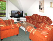 Petite résidence "Seeblick". Dans le quartier de Bockswiese, à 1 km du centre de Hahnenklee, à 12 km du centre de Goslar, à 15 km du centre d'Altenau, sur un versant, juste au bord de la forêt. En commun: terrain 3'000 m2 avec pelouse et arbres, étang. Sentier en escalier (5 marches) jusqu'à la maison. Place de parking (pour 2 voitures) sur le terrain. Supermarché 1 km, restaurant 300 m, piscine couverte 1 km, baignade en lac "Kuttelbacher Teich" 2 km. Chemins de randonnées pédestres depuis la maison 10 m.Interior