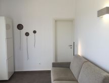 Apt "WeCrete - East", 2 pièces pour 4 personnes, 45 m2, au rez-de-chaussée, confortable et moderne aménagement. Séjour/chambre à coucher avec. Non permis de fumer. Internet (Connexion WIFI). 1 divan-lit double. Chambre à coucher avec 1 lit double. Cuisine ouverte avec four à 2 plaques, four, table pour les repas et réfrigérateur. Douche/WC. Terrasse, meubles de terrasse. Autres fournitures: chaise haute pour enfant, sèche-cheveux. This apartment has a living room with private veranda, a double room, a kitchen and a bathroom and is perfect for couples or families. If you have up to two children there is a convertible Sofa-Bed in the living room so that you can switch between day and night mode within 10 seconds. The kitchen is well equipped with oven, cooktop, fridge with freezer, kettle, toaster and a Nespresso machine. You choose if you prefer eating in the kitchen or outside, on your private veranda with sea-view. The double room offers a massive wood queen size bed with natural Latex matress, memory foam pillows (standard or thick, you choose) and first quality cotton linen, towels and blankets. The modern arranged bathroom has a rainfall shower. Both living room and bedroom are airconditioned/heated.- Caractéristiques de l'hébergement