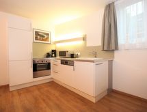 Apt 2 pièces 60 m2, en sous-sol. Clair, aménagement de bon goût et plaisant: entrée. 1 chambre avec 1 x 2 lits superposés, 1 lit double et douche/WC. Avec Dressing. Séjour/chambre à coucher avec 1 divan-lit double, table pour les repas et TV (satellite) (écran plat). Cuisine ouverte (four, lave-vaisselle, 4 plaques vitrocéramiques, four micro-ondes). WC séparé. Petite terrasse 15 m2. Meubles de terrasse. A disposition: lave-linge, sèche-linge. Internet (Connexion WIFI, gratuit). Place de parking (1 Voiture). Veuillez noter: logement non-fumeur. Entrée privée. La terrasse est surélevée par rapport à l'appartement. Parking pour les ski et les chaussures de ski. Places de parking disponibles pour un supplément de 20 € par séjour.- Installations