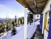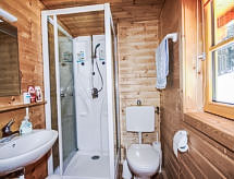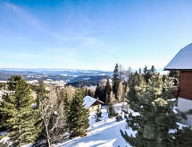 Chalet 4 pièces 120 m2 sur 3 niveaux. Logement idéal pour 5 adultes. Spacieux, aménagement plaisant et avec beaucoup de bois: entrée avec WC séparés. Séjour/salle à manger avec coin repas et TV (satellite) (écran plat), poele de faience. Sortie sur le balcon. Cuisine ouverte (four, 4 plaques vitrocéramiques, four micro-ondes, cafetière électrique). Salle de bains. À l'étage inférieur: 2 chambres doubles. Sortie sur le balcon. Douche/WC, Sauna. Chauffage électrique. À l'étage supérieur: séjour/chambre à coucher mansardé, ouvert avec 1 divan-lit double, douche/WC et TV (satellite) (écran plat). 2 balcons 8 m2. Mobilier de balcon, barbecue (portable), chaises longues (4). Très belle vue panoramique sur les montagnes. A disposition: lave-linge, sauna, lit bébé, sèche-cheveux. Veuillez noter: adapté(e) aux familles. Maison non-fumeur. Détecteur de fumée.- Caractéristiques de l'hébergement