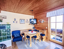 Maison en bois rustique "Willegger", 1'480 m au dessus du niveau de la mer, de 3 étages, année de construction 1995. Situation tranquille sur un versant, à 850 m des pistes de ski. En commun: terrain à l'état naturel 700 m2. Débarras disponible. Accès en voiture jusqu'à la maison. Place de parking (pour 2 voitures). Magasin d'alimentation 850 m, supermarché 16 km, restaurant, bar, café 800 m, location de bicyclettes 850 m, arrêt du bus 10 km, gare ferroviaire 40 km, piscine 8 km. Terrain de golf 17 km, remontées mécaniques 850 m. Les domaines skiables de renommée sont facilement accessibles: Hochrindl-Alpl 850 m, Turrach 20 km, Bad Kleinkirchheim 24 km. Région de randonnées: Nockberge. Le domaine skiable cesse ses activités chaque année le 15 mars. Le domaine le plus proche, ouvert jusqu'à mi-avrile est Turracher Höhe und Schiregion Bad Kleinkirchheim.Interior