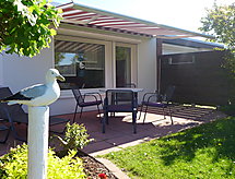 "Wind", maison mitoyenne 3 pièces 48 m2, au rez-de-chaussée. Spacieux, aménagement plaisant: séjour/salle à manger 19 m2 avec TV (satellite) (écran plat), chaîne stéréo. 1 chambre 9 m2 avec 1 lit double (2 x 80 cm, longueur 200 cm). 1 chambre 4 m2 avec 1 x 2 lits superposés (80 cm, longueur 200 cm). Cuisine (lave-vaisselle, 4 plaques vitrocéramiques, grille-pain, bouilloire électrique, four micro-ondes, cafetière électrique). Douche/WC. Terrasse 20 m2. Meubles de terrasse. A disposition: chaise haute pour enfant (en sus). Internet (Connexion WIFI, gratuit). Veuillez noter: maison non-fumeur.- Installations