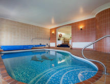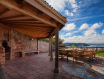 Maison 9 pièces sur 3 niveaux. Spacieux et clair, aménagement confortable et de bon goût: séjour ouvert avec TV, écran plat et DVD. Cuisine ouverte (4 plaques de cuisson, four, four micro-ondes, congélateur) avec table pour les repas. WC séparé. Chauffage. À l'étage inférieur: salle de jeux. Sortie sur la piscine. Douche/WC, Sauna. Chauffage. À l'étage supérieur: 6 chambres doubles, chaque chambre avec: 1 lit double. 2 chambres doubles, chaque chambre avec: 2 lits. Bain/douche/WC. Chauffage. Meubles de terrasse. Belle vue sur la mer. A disposition: lave-linge, sèche-linge. Internet (Connexion WIFI, gratuit). Veuillez noter: maison non-fumeur.- Installations