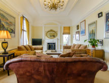 Belle, grande maison luxueuse "Wolborough", du 19ème siècle. Situation tranquille, ensoleillée. A usage privé: jardin avec pelouse. Jardinet, meubles de jardin, place de parking près de la maison. Magasins, magasin d'alimentation, centre commercial, restaurant, bar 300 m. Veuillez noter: voiture recommandée.Interior