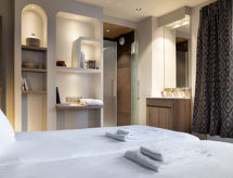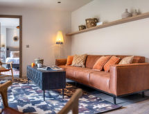 Apt 3 pièces 58 m2. Séjour/salle à manger avec TV (écran plat). 1 chambre avec 1 grand-lit et douche. 1 chambre avec 2 couchages. Coin cuisine (lave-vaisselle, 2 plaques vitrocéramiques, grille-pain, bouilloire électrique, cafetière électrique, Capsules pour machine à café (Dolce Gusto) (NON INCLUSES), combiné micro-ondes). Salle de bains, WC séparé. Chauffage électrique. A disposition: sauna, coffre-fort, sèche-cheveux. Internet (Connexion WIFI, gratuit). 1 animal/ chien autorisé.- Caractéristiques de l'hébergement
