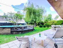 Maison 7 pièces 180 m2 sur 2 niveaux. Aménagement agréable: séjour/salle à manger avec cheminée. Sortie sur le jardin. Salon avec TV (écran plat). Sortie sur le jardin. Cuisine ouverte (four, lave-vaisselle, 3 plaques à induction, four micro-ondes, congélateur, cafetière électrique). WC séparé. À l'étage supérieur: 3 chambres, chaque chambre avec: 1 grand-lit (1 x 160 cm, longueur 200 cm). 1 chambre avec 2 lits (80 cm, longueur 200 cm). 1 chambre avec 1 grand-lit (1 x 160 cm, longueur 200 cm), douche. Salle de bains, douche, WC séparé. Chauffage au fuel. Grande terrasse 18 m2. Meubles de terrasse, barbecue, chaises longues (4). A disposition: lave-linge, sèche-linge, chaise haute pour enfant, lit bébé. Internet (Connexion WIFI, gratuit). Veuillez noter: 1 animal/ chien autorisé. Détecteur de fumée. 1 Douche dans le garage à disposition. Fêtes non autorisées. Voisinage sensible aux nuisances sonores.- Caractéristiques de l'hébergement