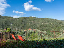 Cottage accueillant, rustique "Zambo", environné par les arbres et prés. Dans le quartier de Lecchiore, à 5 km du centre de Dolcedo, à 12 km du centre d'Imperia, à 38 km du centre de San Remo, situation isolée, surélevée sur une colline, à 12 km de la mer, dans la verdure. En commun: terrain à l'état naturel 2'000 m2, jardin sur plusieurs niveaux avec pelouse et plantes. Pergola, barbecue, espace de jeux pour les enfants (toboggan, balançoire). Infrastructures de la Maison: réduit pour bicyclettes, lave-linge (en commun). Place de parking sur le terrain. Magasins 5 km, supermarché 12 km, restaurant 5 km, gare ferroviaire "Imperia Porto Maurizio" 14 km, plage de sable "San Lorenzo al Mare" 17 km plage de graviers "Imperia" 12 km, baignade en lac "Laghetti Lecchiore" 1 km. Chemins de randonnées pédestres depuis la maison 10 m. Vente locale de produits de la ferme.Interior