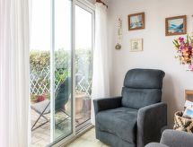 Bidart: Résidence "Zirlinga". À 100 m de la mer, à 100 m de la plage, route à traverser, accès direct à la plage. En commun: jardin entretenu, piscine (15 x 7 m, profondeur 100 - 180 cm, disponibilité saisonnière: 15.Mai. - 30.Sep.). Bassin pour les enfants, tennis. Magasin d'alimentation 800 m, restaurant, bar 50 m, boulangerie 1 km, centre à 5 minutes à pieds, arrêt du bus 50 m, gare ferroviaire "Guéthary" 4 km, plage de sable "Uhabia" 80 m. Terrain de golf (9 trous) 4 km, ecole de surf 80 m, tennis 10 m. Attractions à proximité: Bidapark 200 m, Marché tous les samedis. Région de randonnées: La Rhune 15 km. Veuillez noter: D’autres appartements sont également proposés à la location dans cette maison de vacances. La résidence est située à 200 m de la route nationale.Interior